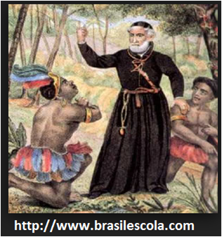 Em obra de artista desconhecido, o padre Antônio Vieira convertendo os Índios do Brasil.